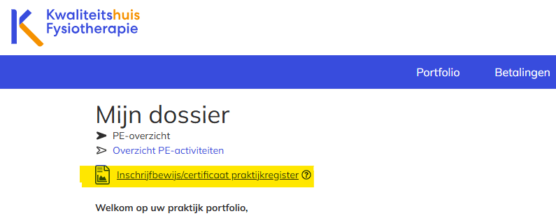 Klik hier om je aan te melden (opent in nieuw tabblad) voor het Praktijkregister Fysiotherapie.